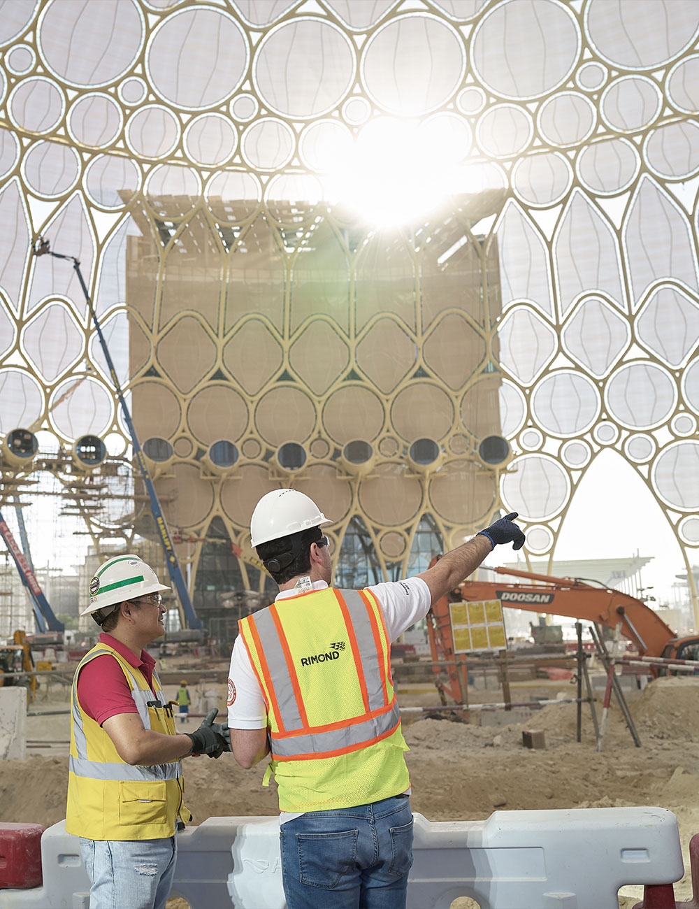 For over 170 years, the World Expos have showcased innovations that have left a lasting impact on their host cities, the local region, and even globally. These mega-events have not only raised a city’s profile and promoted economic growth, they have also created legacies of unique landmarks and societal influences, such as the world-famous Eiffel Tower. The heart of the Expo 2020 Dubai event was the Al Wasl Plaza. Featuring a massive, 130m-diameter steel dome topped by a 67m-high trellis, it served as a central hub for the Expo. The Al Wasl Plaza Dome is also the world’s largest 360-degree projection surface, which was designed to create an immersive experience for the visitors within while also being visible to those outside. This fusion of engineering, history, technology, and media has already been labelled as a global masterpiece and will be this World Expo’s legacy. RIMOND CIMOLAI was the principal contractor for the construction of the Al Wasl Plaza Dome. The scope of works included the installation of the steelwork; systems for shading, building maintenance unit (BMU), MEP, and LED lighting; and the enclosures for projectors and speakers. However, the project had tight timescales and stringent sustainability requirements, as well as the logistical challenge of working around 200 other live sites. To achieve this, RIMOND championed a collaborative culture – as well as a digital approach and off-site construction – to offer a fast-track solution that would ensure the timely and successful delivery of this politically sensitive and challenging venture.